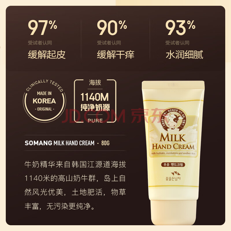 商品相册:所望牛奶护手霜80ml 男女士保湿补水手干燥粗糙防裂润肤 持久留香 第