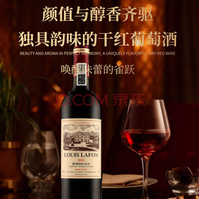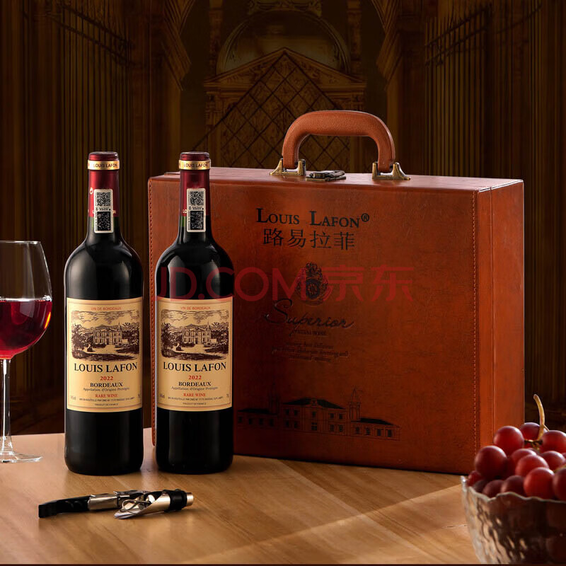 商品相册:路易拉菲(LOUIS LAFON)法国原瓶进口红酒波尔多AOP14度干红葡萄酒750ml*2瓶双支礼盒送礼第