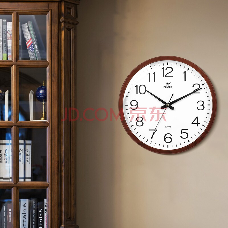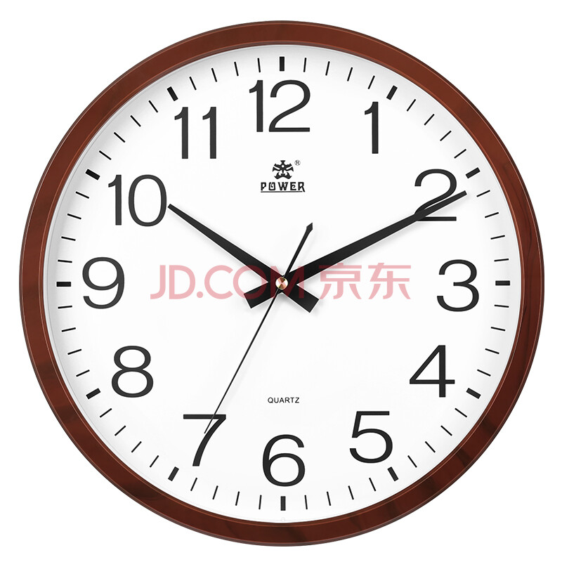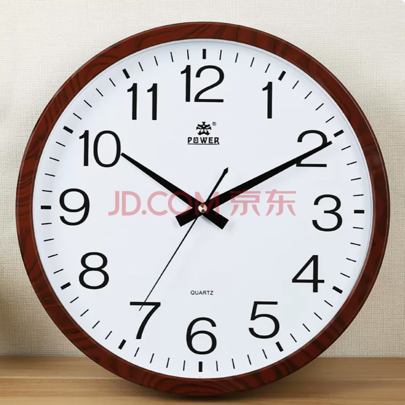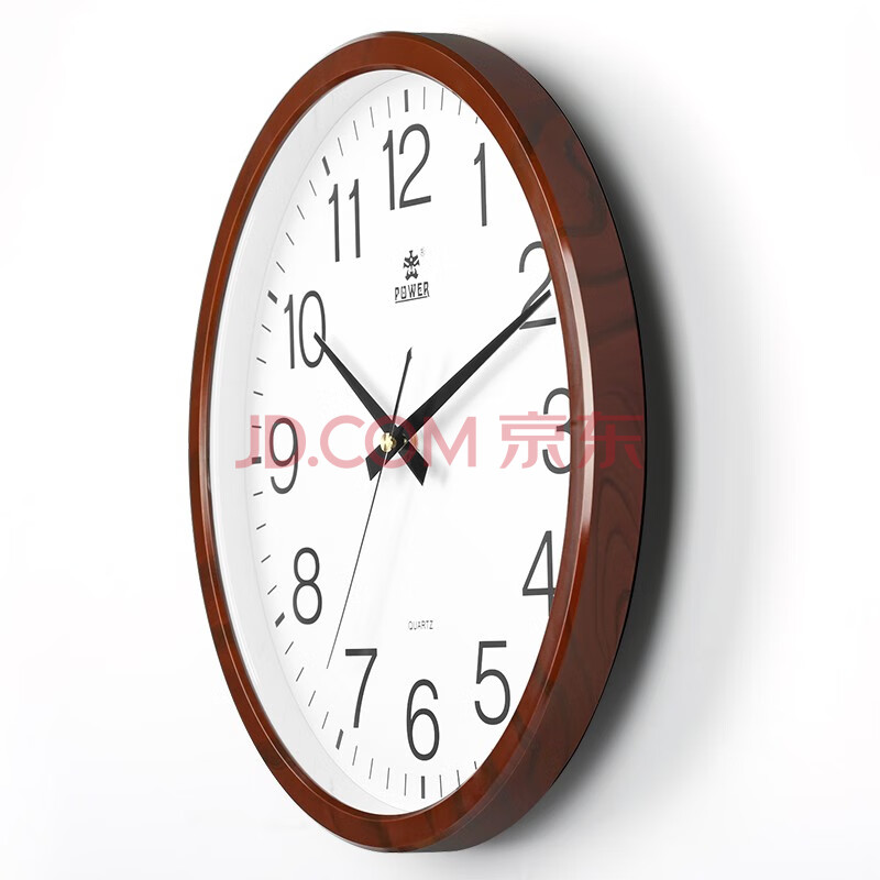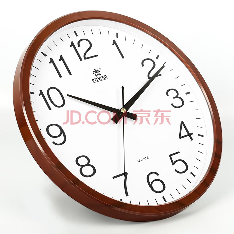 商品相册:POWER霸王挂钟表 客厅简约挂墙大号时钟电子石英钟35cm木纹色23016J第