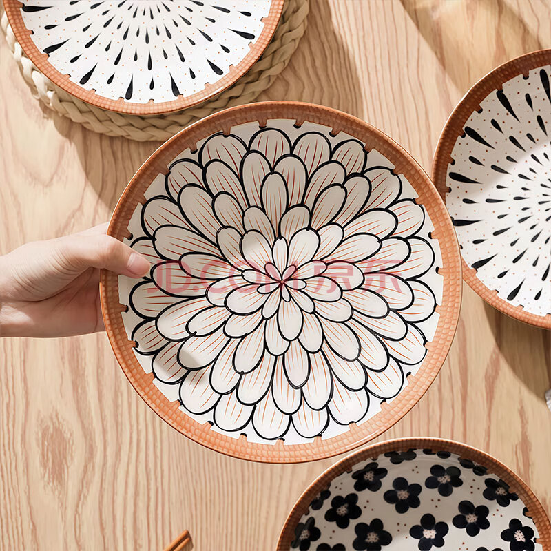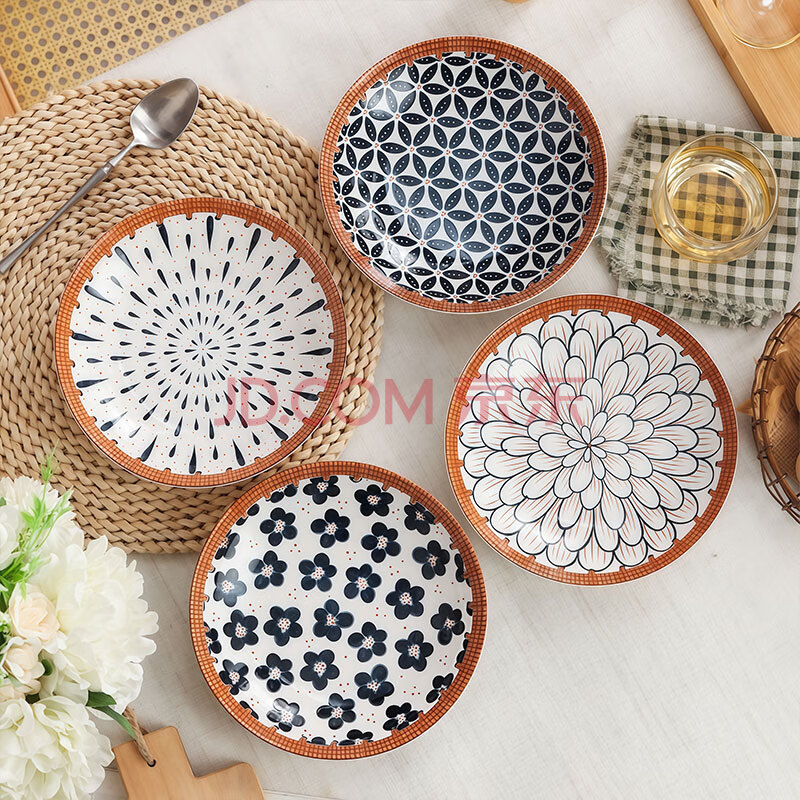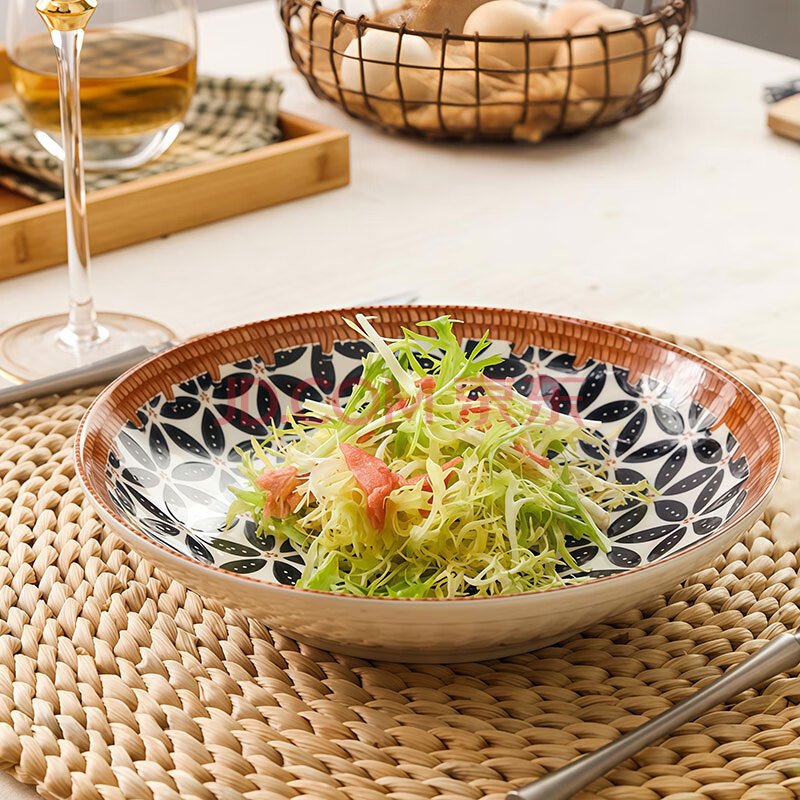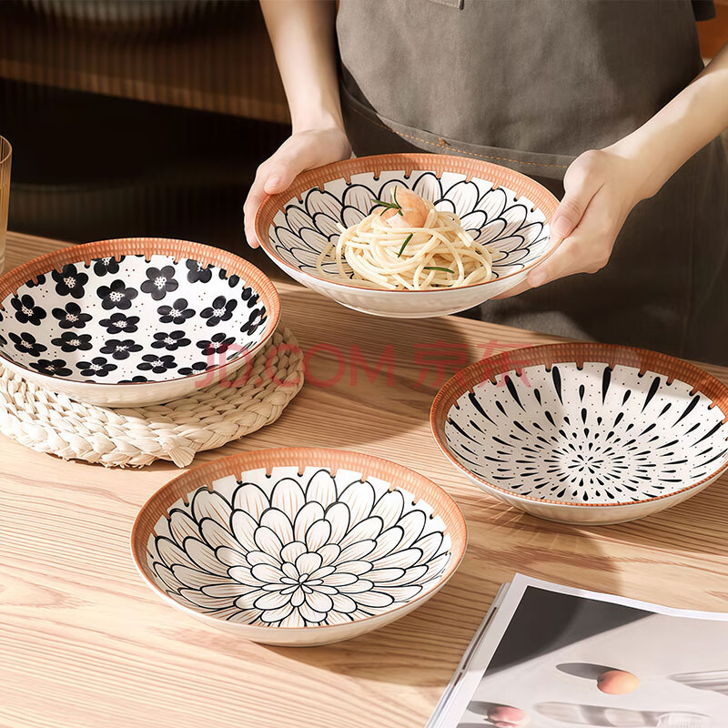 商品相册:几物森林 陶瓷深盘餐具盘子家用牛排盘西餐盘菜盘子饺子盘 藤编8英寸4只装第