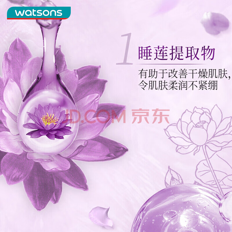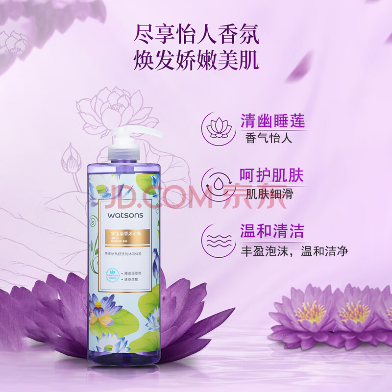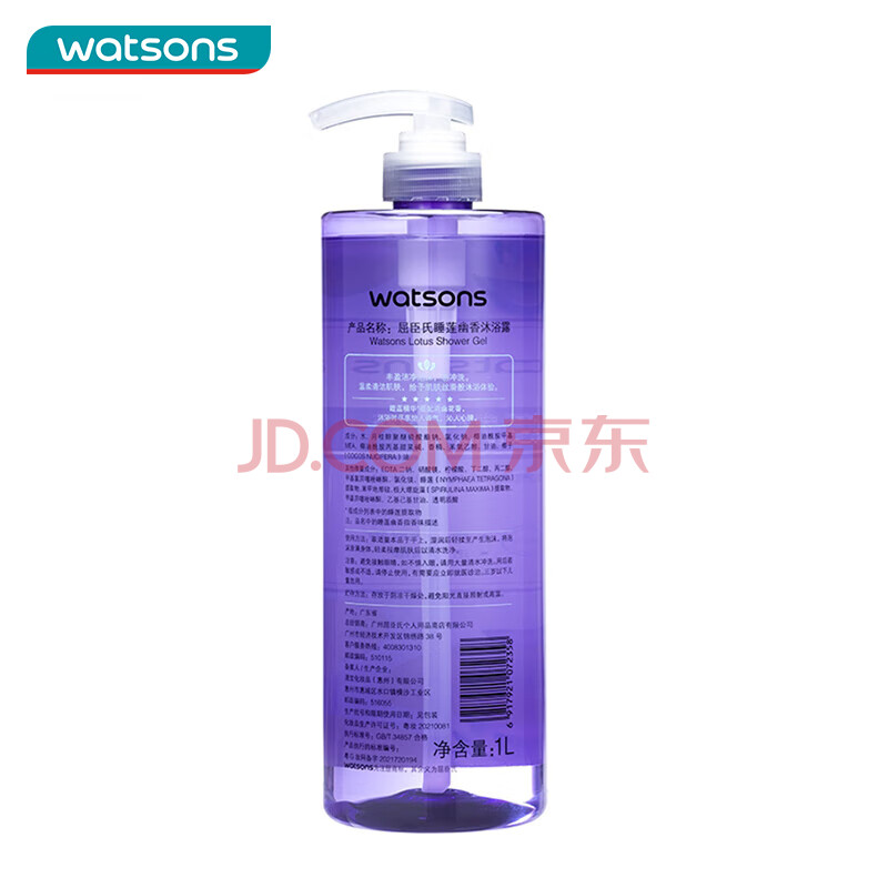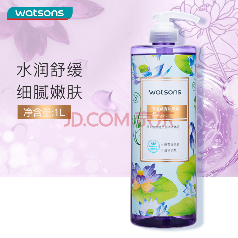 商品相册:屈臣氏睡莲水润沐浴露1L(睡莲精华 透明质酸 温和洁净)第