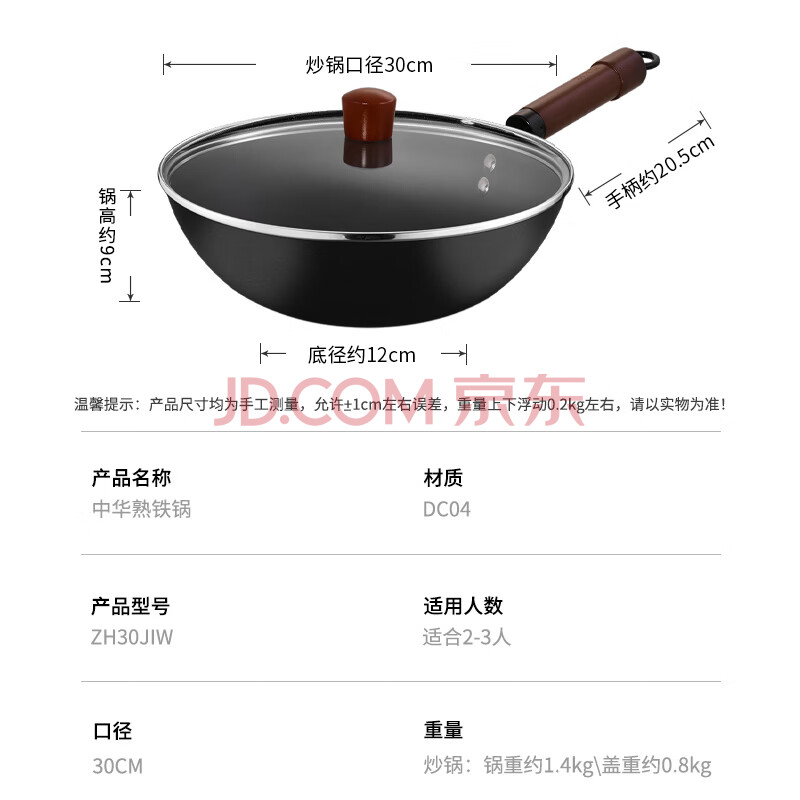 商品相册:炊大皇炒锅铁锅健康无涂层平底炒菜锅30cm电磁炉通用ZH30JIW第