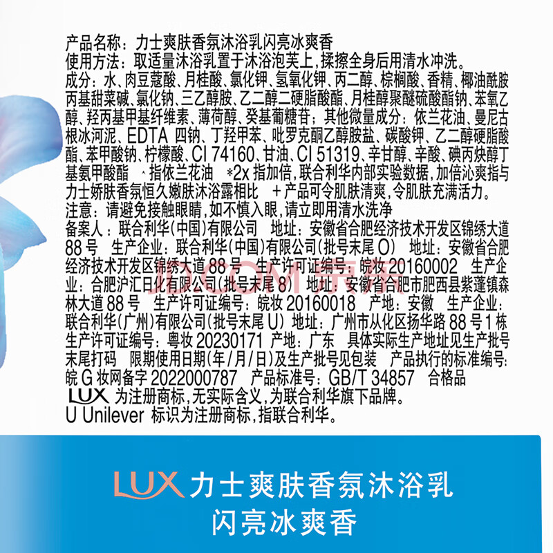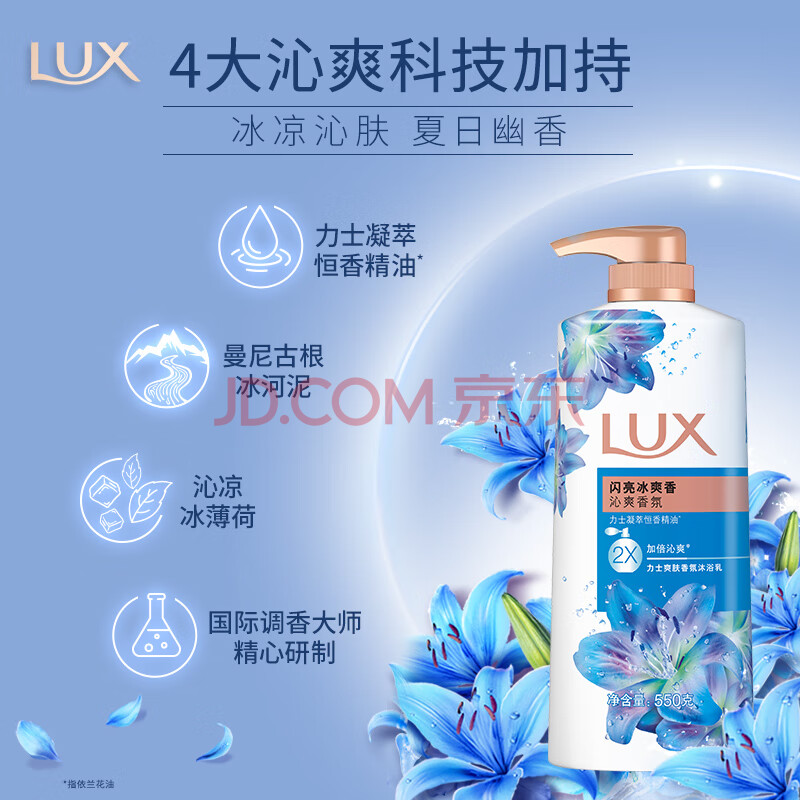 商品相册:力士(LUX)闪亮冰爽 爽肤香氛沐浴乳550g 留香第