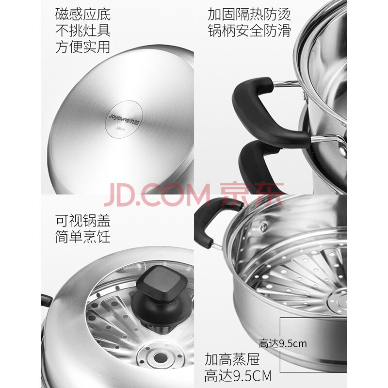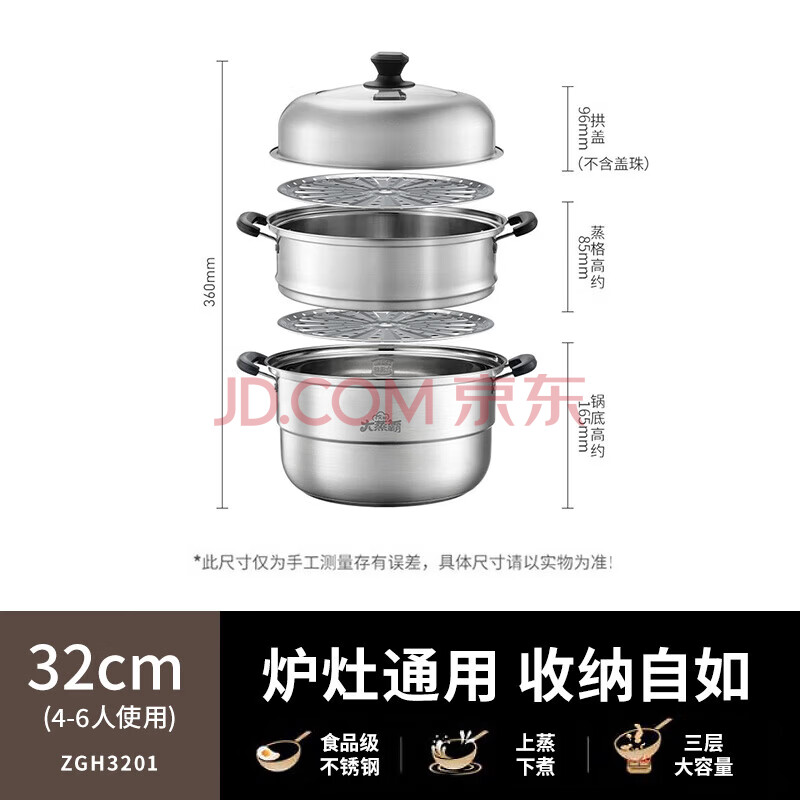 商品相册:九阳(Joyoung)蒸锅三层蒸锅复合底不锈钢汤锅家用蒸馒头包子高拱盖32cm ZGH3201第