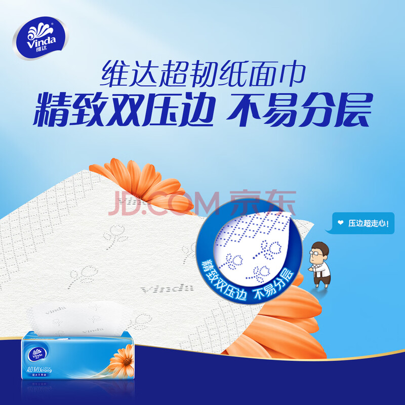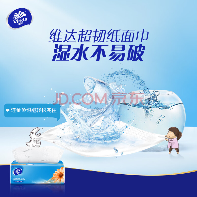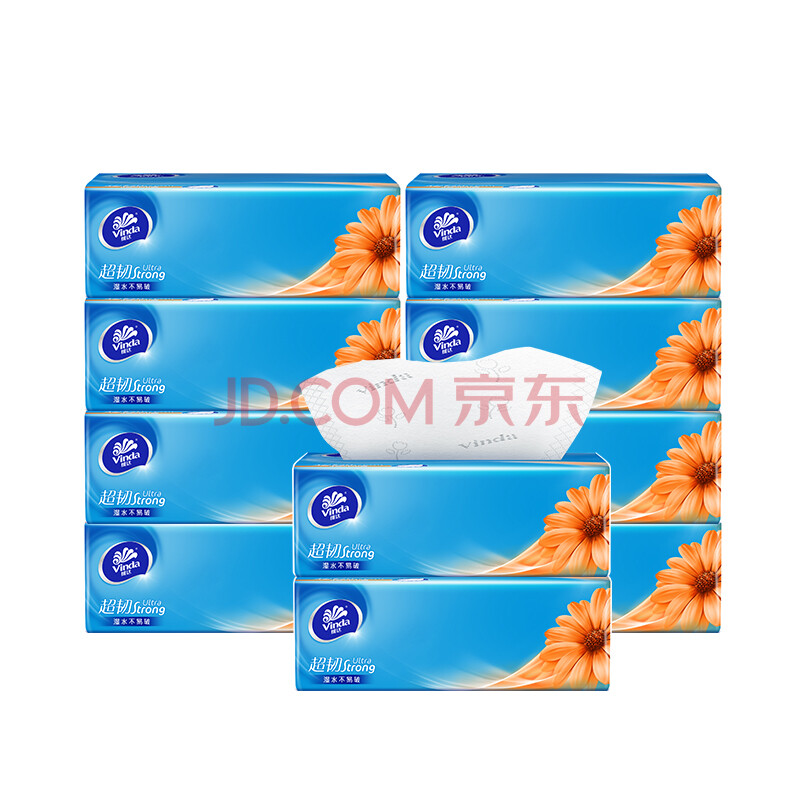 商品相册:维达(Vinda)抽纸 超韧3层100抽*10包S码 湿水不易破 纸巾 新旧随机发货第