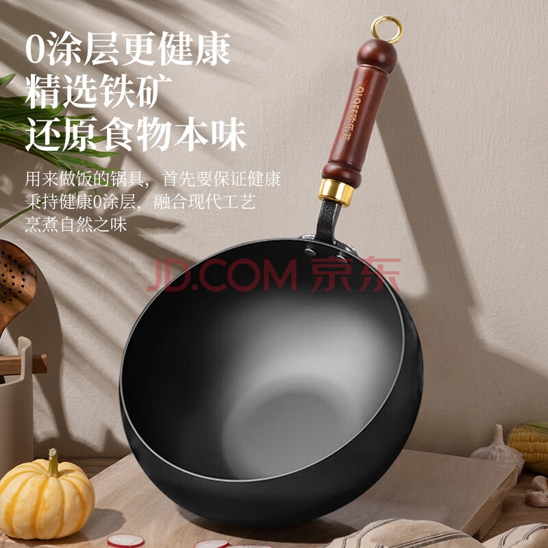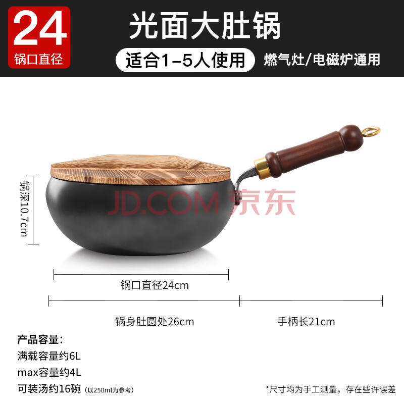 商品相册:欧乐菲(OLOFE)章丘网红大肚小铁锅无涂层炒锅圆肚光板铁锅无涂层大肚黑铁锅24cm第