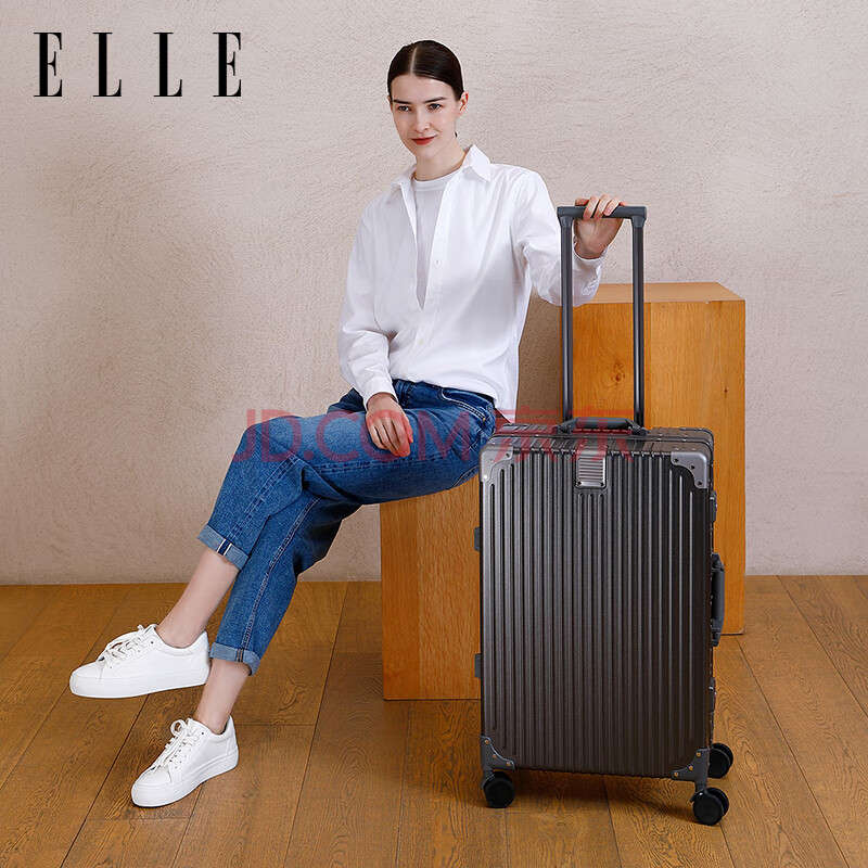 商品相册:ELLE法国行李箱时尚灰色24英寸拉杆箱女士旅行箱防刮耐磨万向轮密码箱第