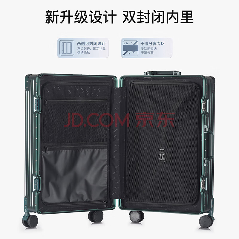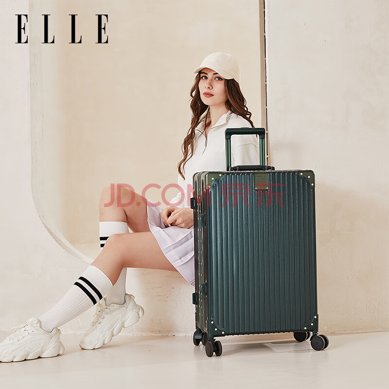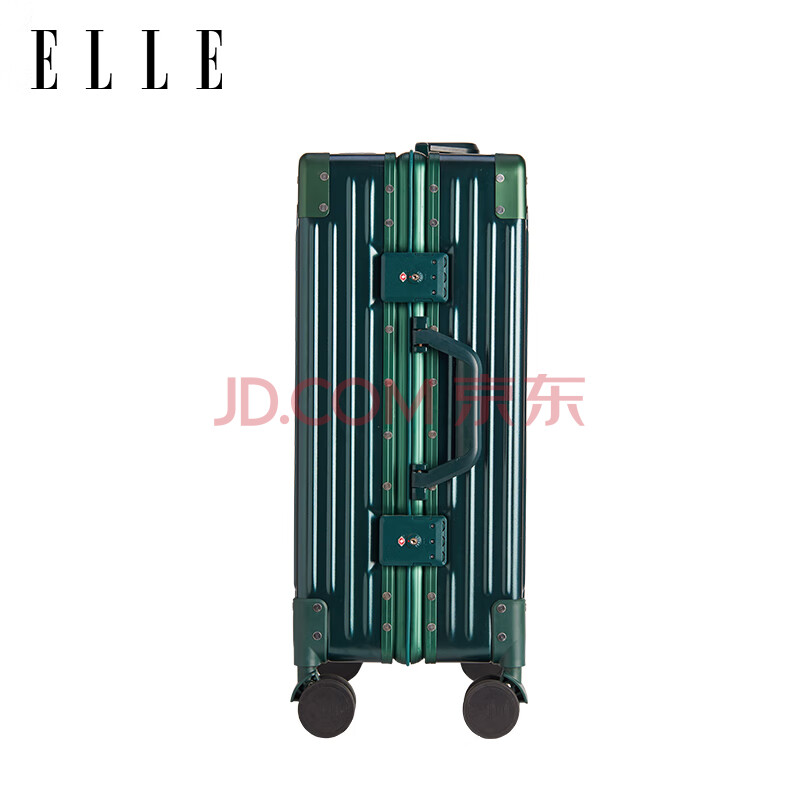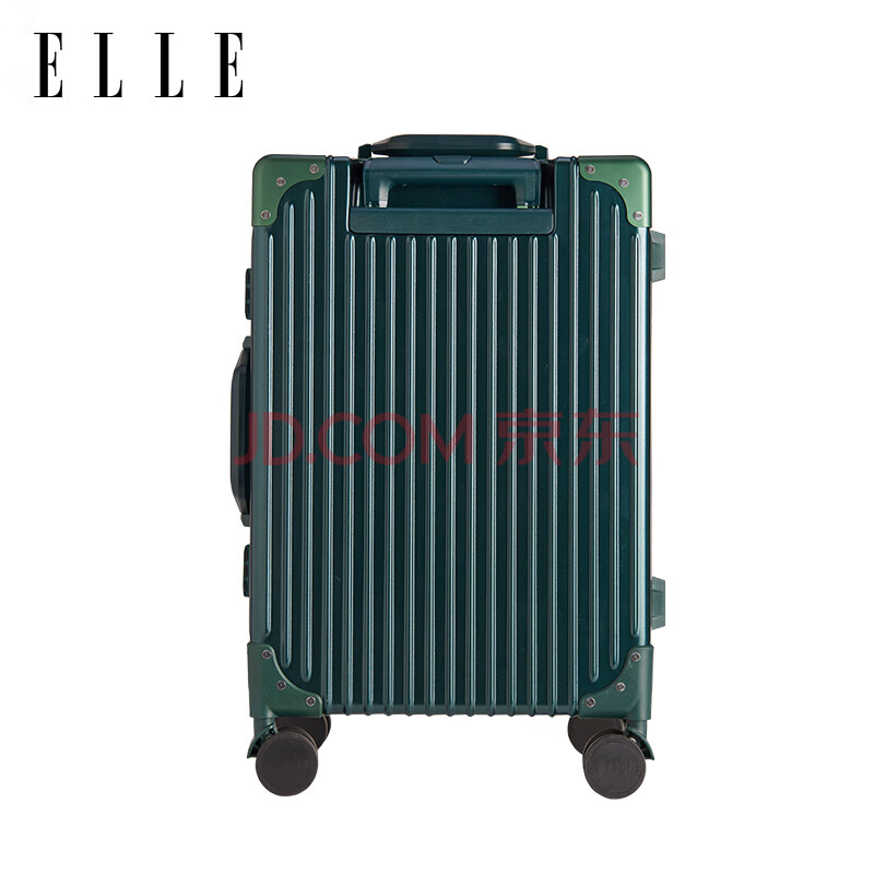 商品相册:ELLE法国品牌行李箱墨绿色22英寸铝框时尚拉杆箱万向轮耐磨女士密码箱第