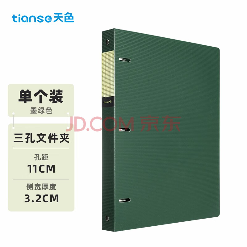 商品相册:天色三孔文件夹打孔a4活页夹插页资料册多功能办公室收纳神器 彩色穿孔大容量加厚强力夹 TS-1620 墨绿第