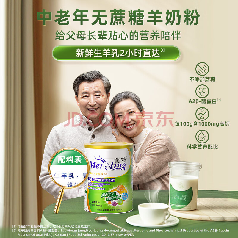 商品相册:美羚羊奶粉成人无蔗糖中老年羊奶粉800g*1罐第