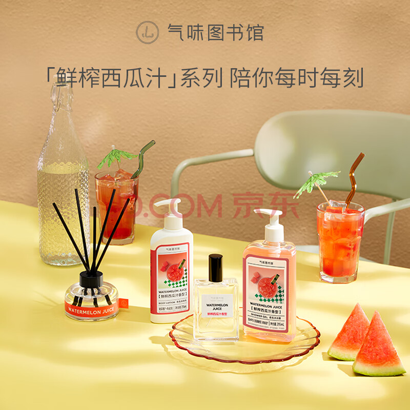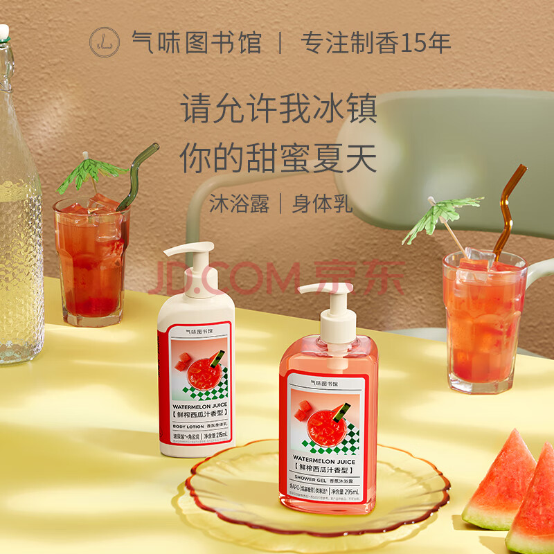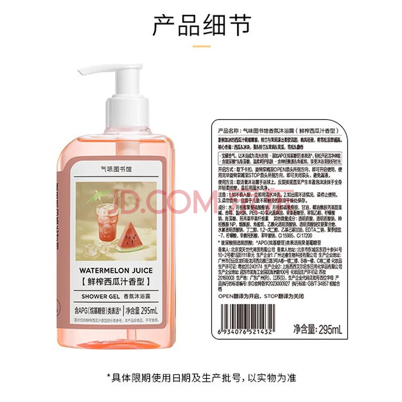 商品相册:气味图书馆鲜榨西瓜香氛沐浴露295ml果香沐浴液全身清洁留香男女士洗澡通用第