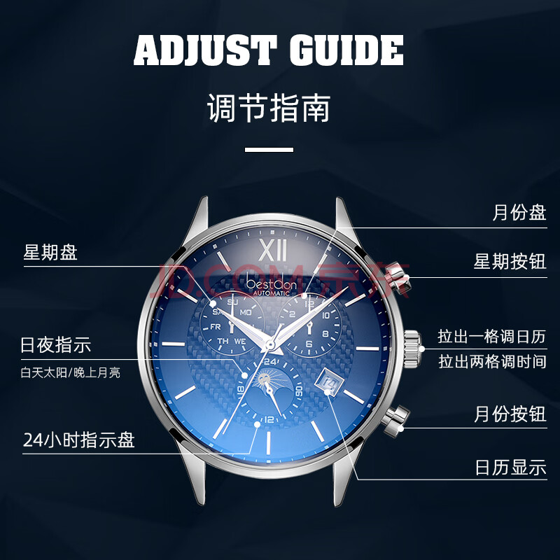 商品相册:邦顿(Bestdon)手表男士机械表防水夜光男表腕表礼盒男款礼物送男生第