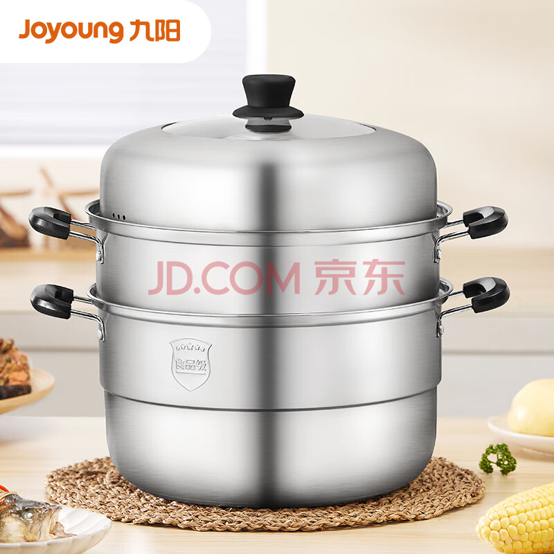 商品相册:九阳(Joyoung)蒸锅不锈钢三层大容量蒸锅复合底汤锅家用蒸馒头包子高拱盖 26cm第