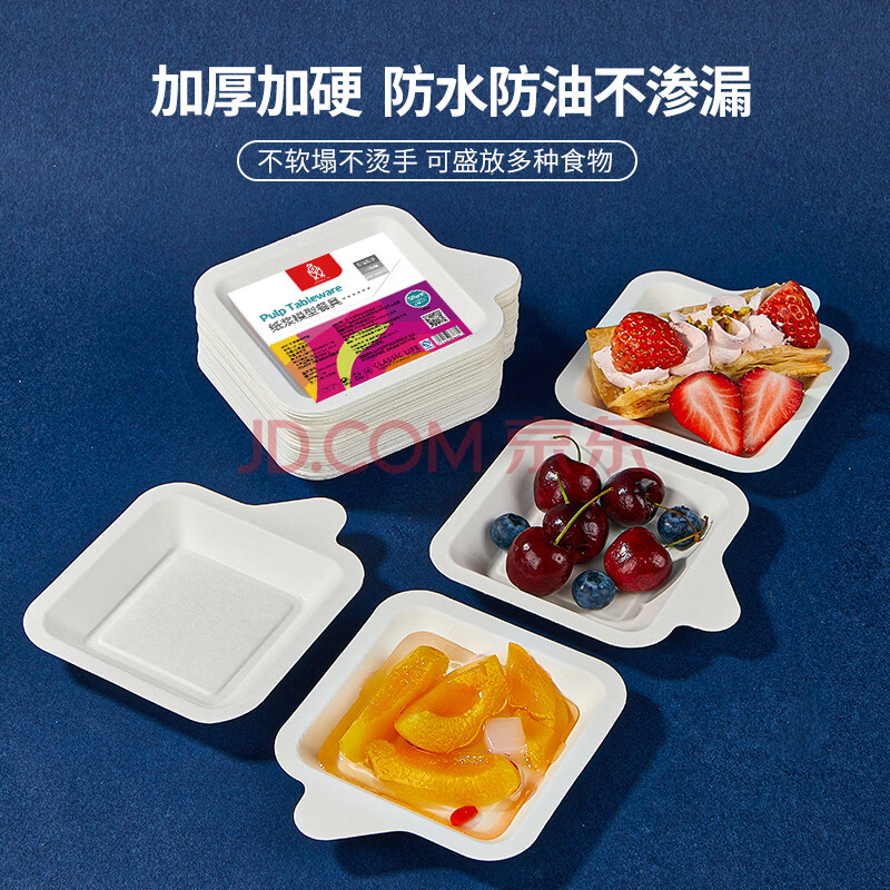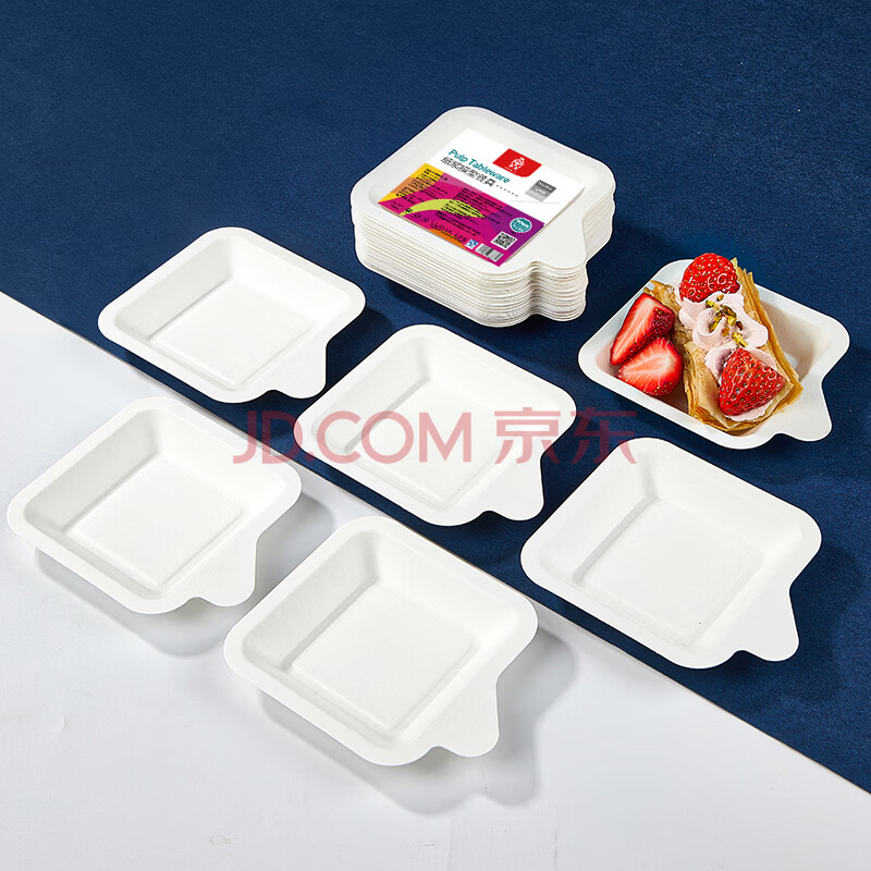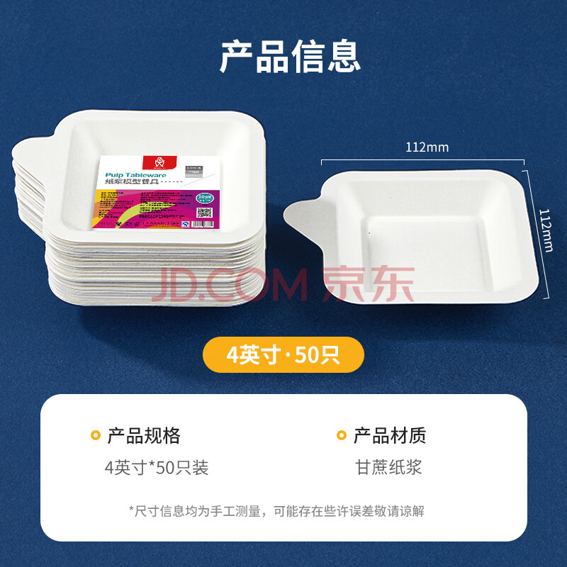 商品相册:SHUANG YU一次性盘子4英寸*50只可降解纸盘方形纸碟蛋糕盘环保餐盘餐具用品第