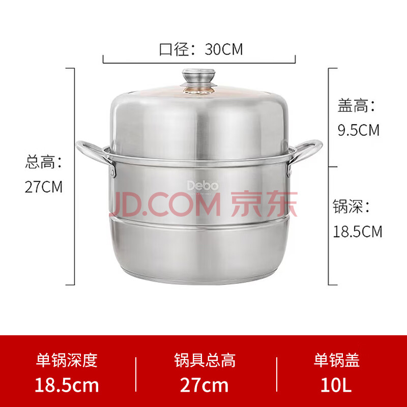 商品相册:Debo德铂汤蒸锅304不锈钢锅二层蒸锅电磁炉通用沃里克30cm第