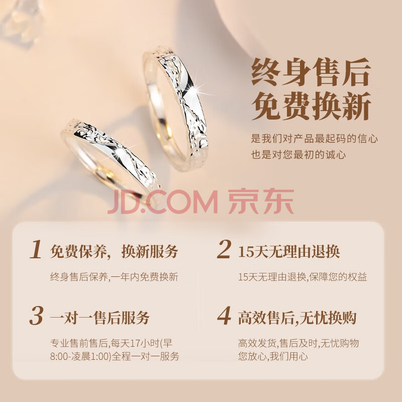 商品相册:曼禾(MANHE)S999足银戒指情侣对戒一对求婚钻戒开口女款男士生尾戒情人节礼物第