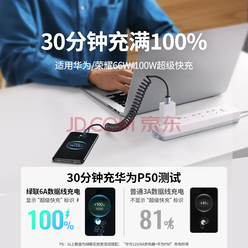 商品相册:绿联车载弹簧充电线伸缩Type-C数据线6A适用华为荣耀超级快充100W/66W小米手机Pura80/70/Mate70/60第