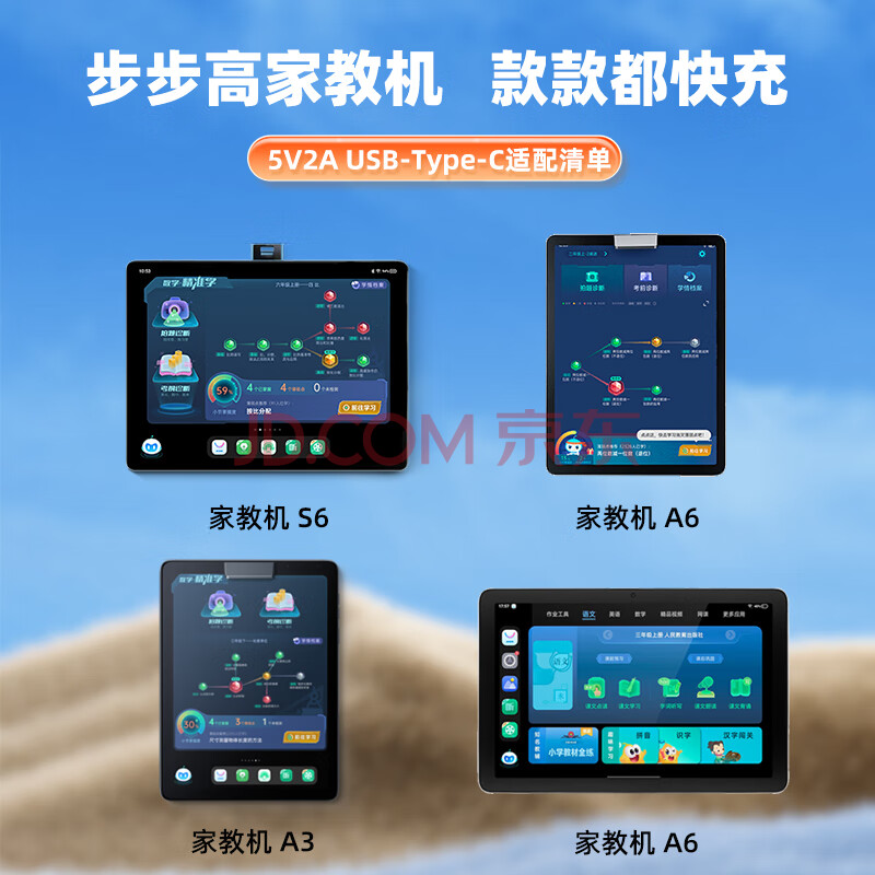 商品相册:trendsetter适用步步高学习机充电器充电线X3/A8/A7/S8/S7/s6/a6/A3/X2家教机学生平板电脑充电头数据线套装第