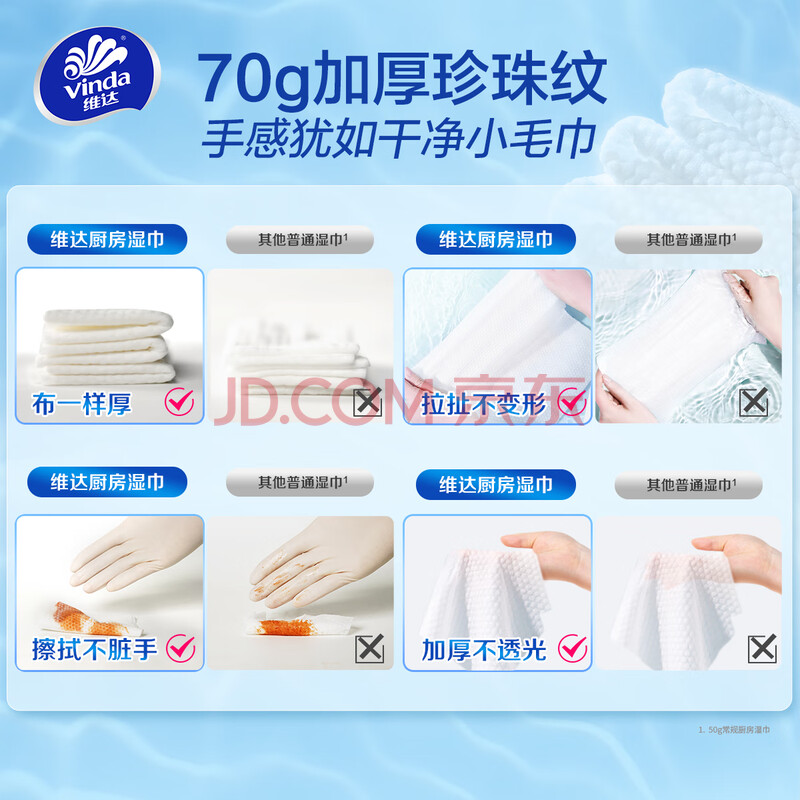 商品相册:维达(Vinda)厨房湿巾 40片*3包 超大加厚尺寸 厨房纸去油污 厨房用纸第