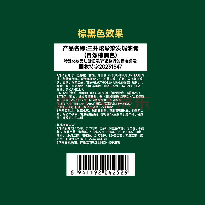 商品相册:三井(TRI-WELL)染发剂女士盖白发纯棕黑色不沾头皮植物男士泡泡染发膏第