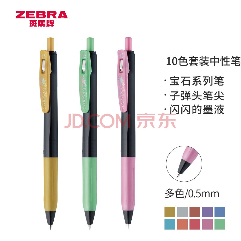 商品相册:斑马牌(ZEBRA)JJ15宝石系列中性笔 0.5mm按动中性笔子弹头签字笔 学生手账笔标记笔 JJ15-10C-SH 10色套装第