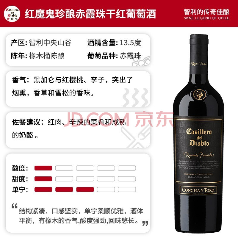 商品相册:红魔鬼(Casillero del Diablo)【山姆同款】珍酿级赤霞珠干红葡萄酒750ml单瓶 智利原瓶进口红酒第