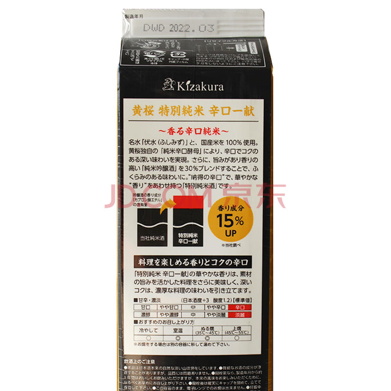 商品相册:黄樱(KIZAKURA) 辛口一献 特别纯米清酒 1.8L 日本原装进口第