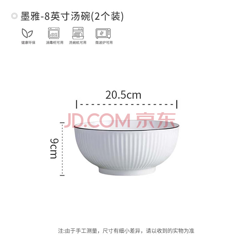 商品相册:浩雅釉下彩景德镇陶瓷餐具泡面碗大汤碗拉面碗墨雅8英寸汤碗2个装第