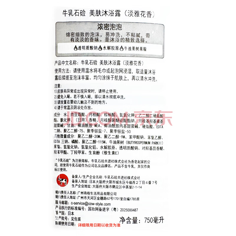 商品相册:牛乳石硷碱COW美肤沐浴露750ml+360ml*2淡雅花香沐浴乳泡沫丰富热门商品第