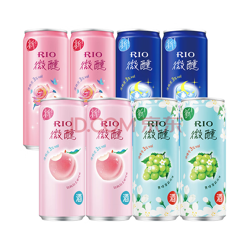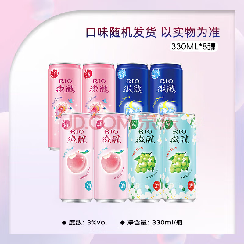 商品相册:锐澳(RIO)洋酒 预调酒 鸡尾酒 果酒甜酒 微醺3度小美好 330ml*8罐口味随机第