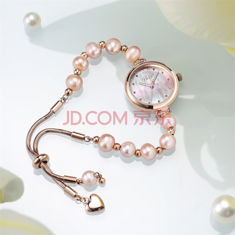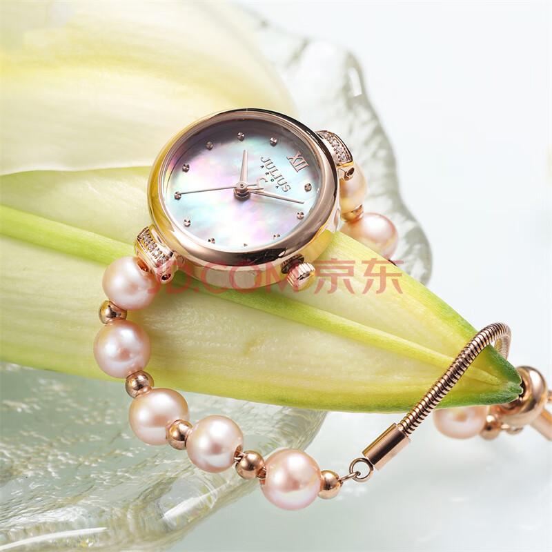 商品相册:聚利时(Julius)手表女小珍珠手链轻奢小众母贝学生女士石英手表浅紫色JA-1346C第