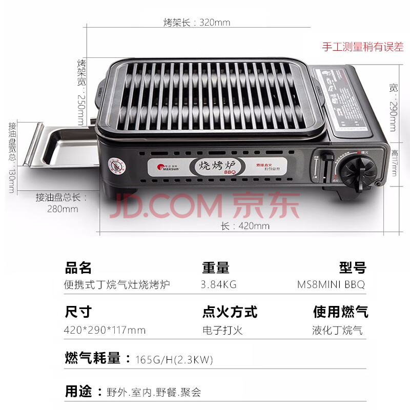 商品相册:脉鲜MAXSUN烧烤卡式炉MS-8MINI BBQ瓦斯燃气炉煤气炉卡式烧烤煎烤炉第
