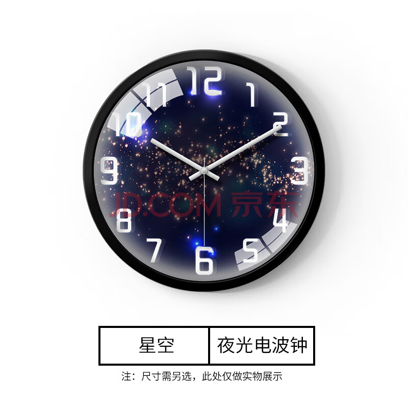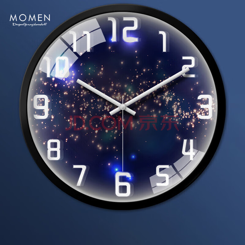商品相册:摩门(Momen)电波钟客厅夜光钟表时尚简约时钟表挂墙30cm挂钟 金属黑 HJ0021第