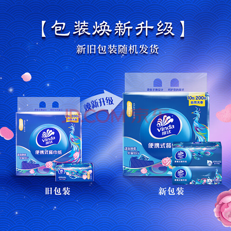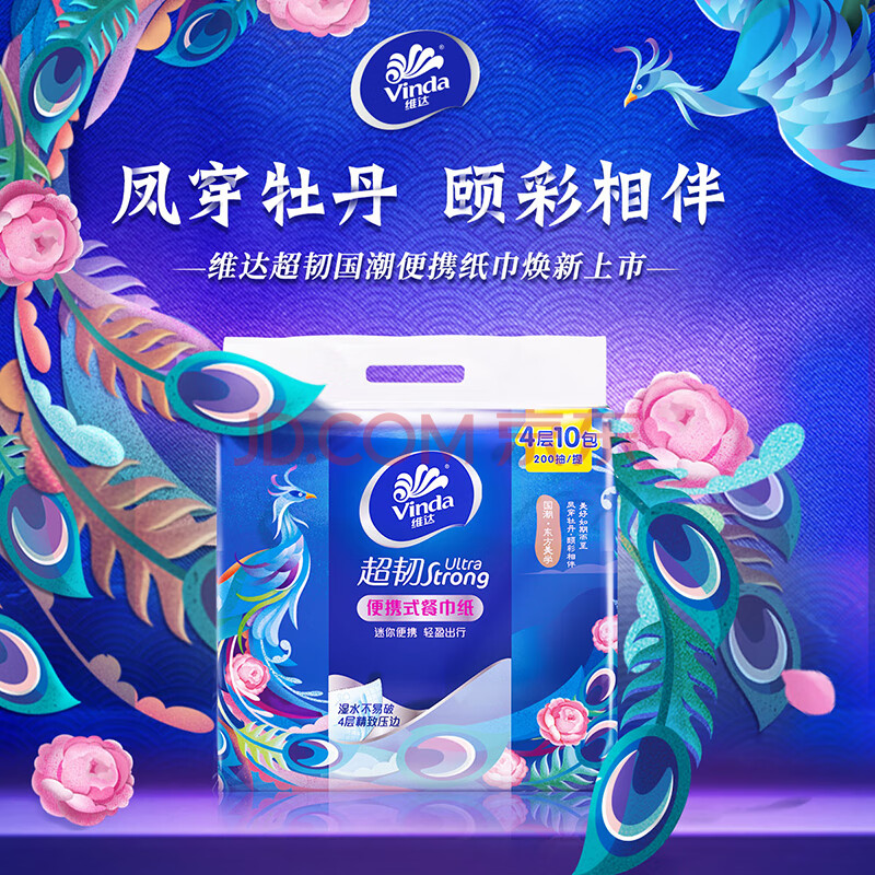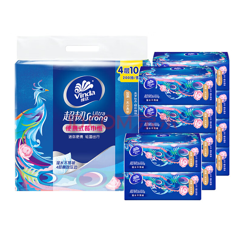 商品相册:维达(Vinda)超韧餐巾纸 4层20片10包 国潮设计 出行必备 无香便携纸巾小方巾第