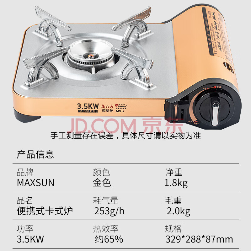 商品相册:脉鲜(MAXSUN)高火力便携式卡式炉 MS-7 户外防风便携家用炉子 野炊炉 金色第