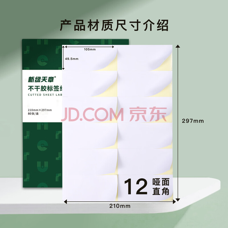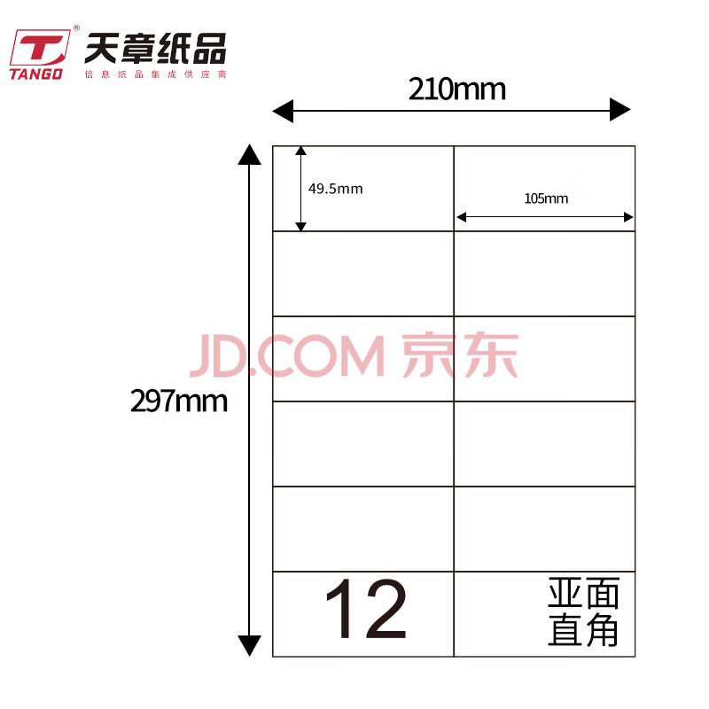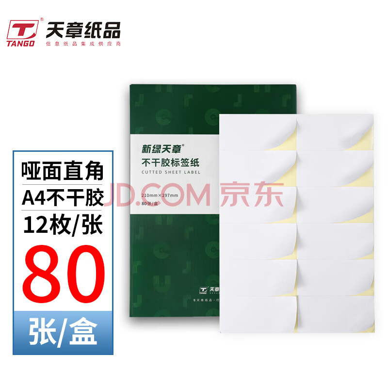 商品相册:天章 (TANGO)A4不干胶打印纸 背胶纸可粘贴标签纸贴纸不粘胶姓名贴 黄底哑面直角12枚/张(105*49.5mm)80张/盒第