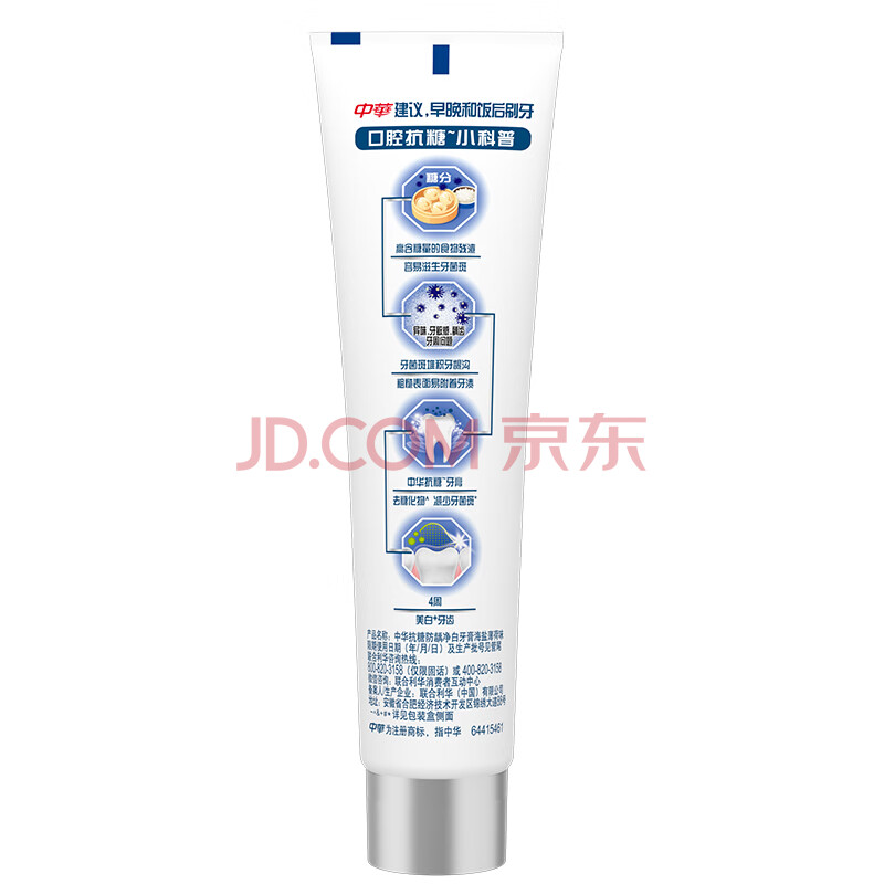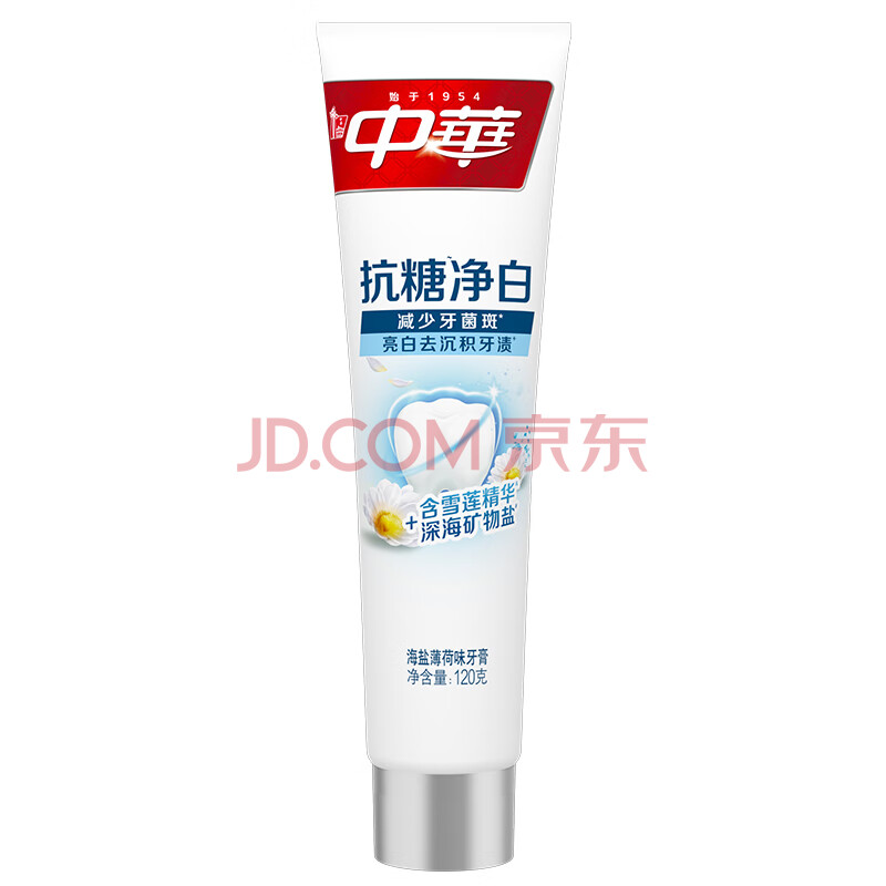 商品相册:中华抗糖净白牙膏亮白去沉积牙渍减少牙菌斑海盐薄荷味120g*1支第