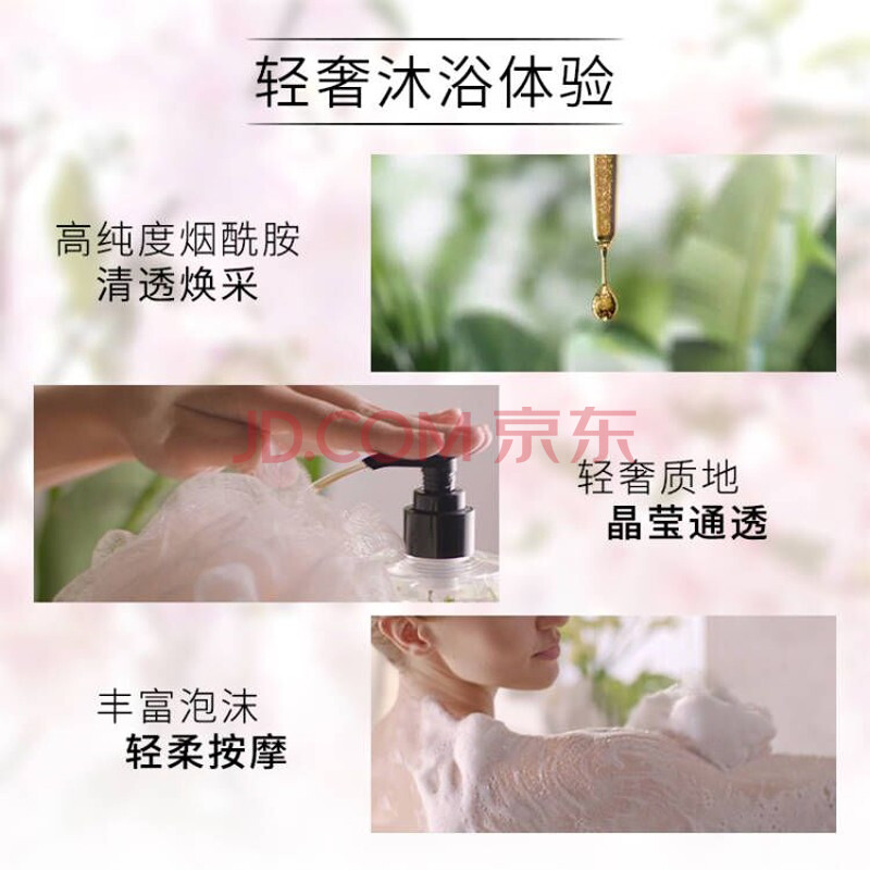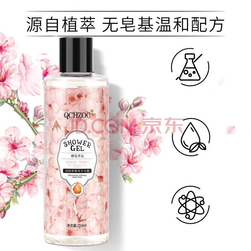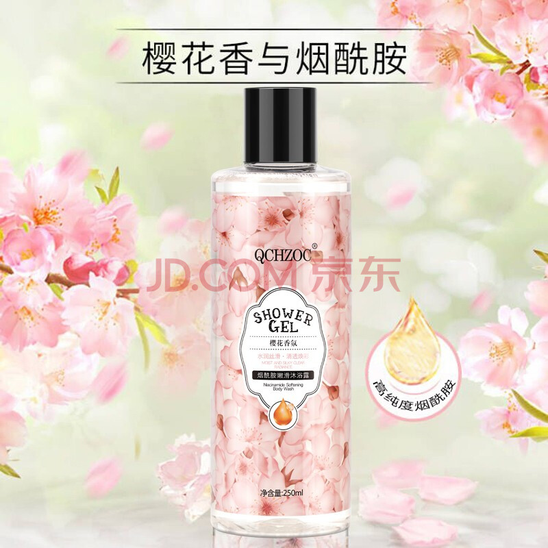 商品相册:QCHZOC樱花滋养嫩肤烟酰胺亮肤植萃香氛沐浴露250ml第