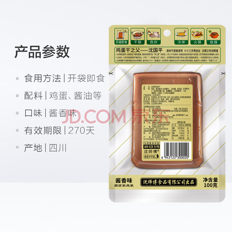 商品相册:沈师傅经典鸡蛋干100g*10袋四川特产卤味酱香休闲轻食菜肴高蛋白豆干第1张/共6