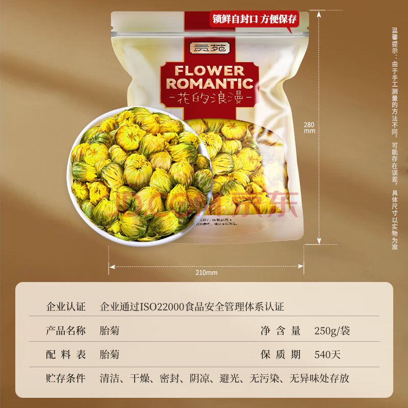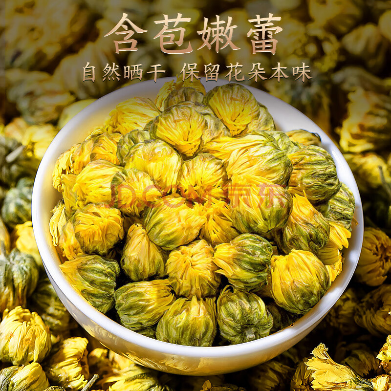 商品相册:贡苑 菊花茶胎菊王250g 头采特大份实惠装级桐乡胎菊王花蕾花草茶第