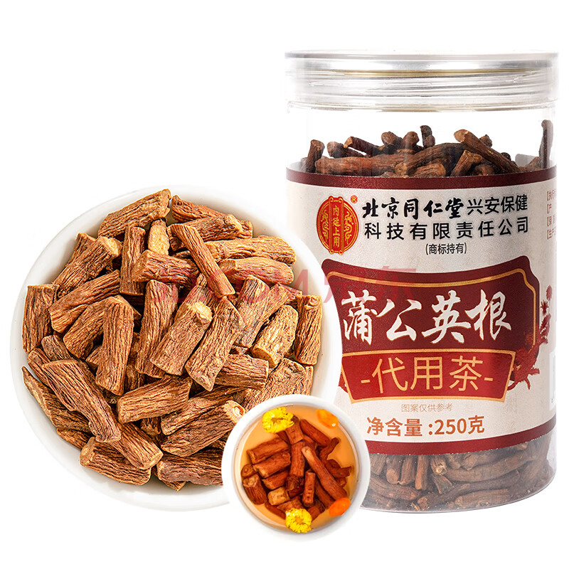 商品相册:同仁堂(TRT)蒲公英根茶婆婆丁炒制莆公英颗粒大段蒲公英茶250g/罐第