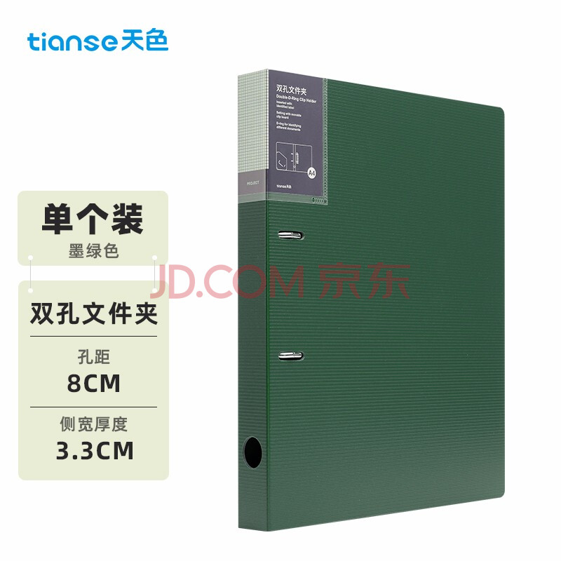 商品相册:天色两孔文件夹打孔 a4二孔活页夹插页资料册多功能办公室收纳 彩色穿孔大容量加厚强力夹TS-1612 墨绿第