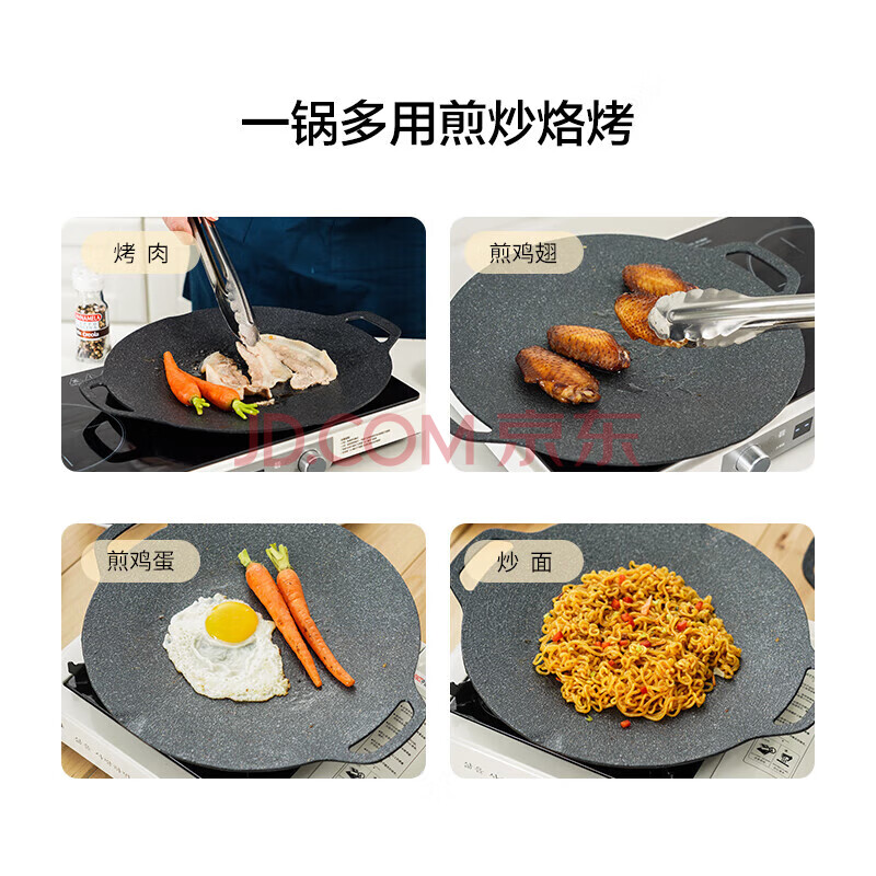商品相册:乐扣乐扣(LOCK&LOCK)多功能双耳不粘烤盘平底锅煎蛋牛排烤肉炒菜电磁炉煤气灶通用33cm第