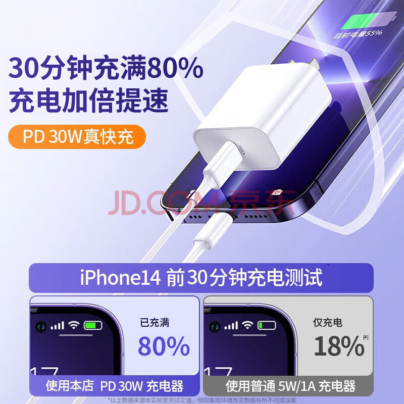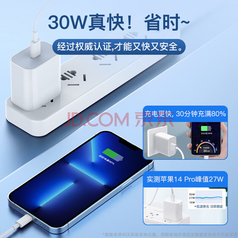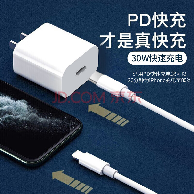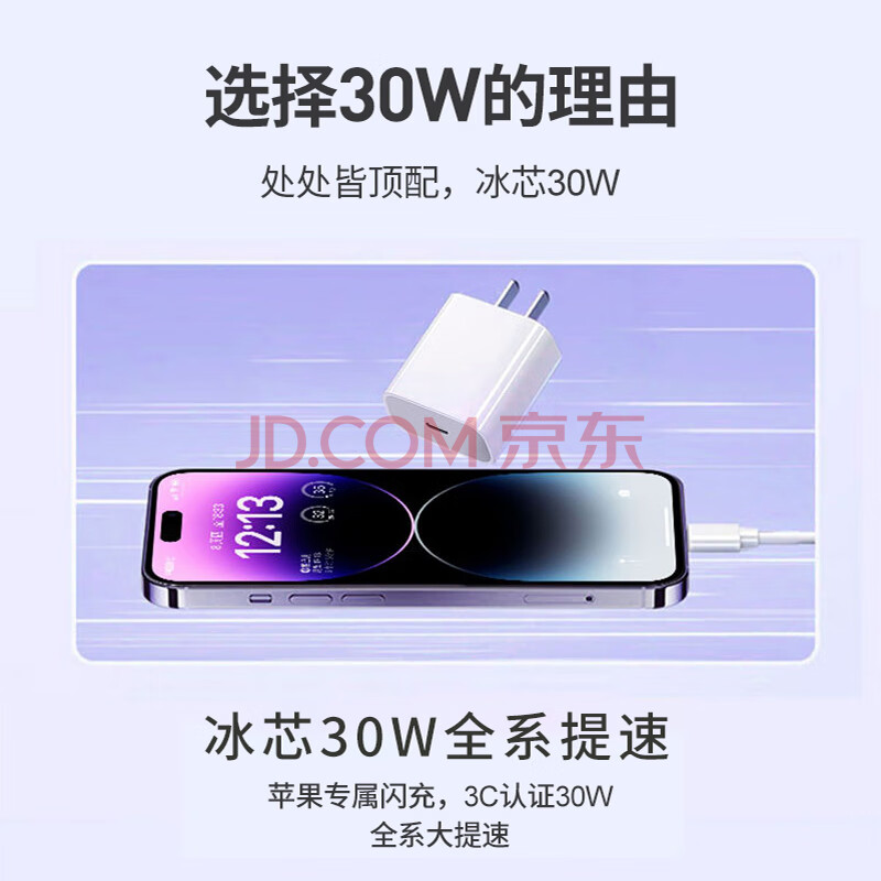 商品相册:科沃适用于苹果30W充电器套装PD快充充电头数据线兼容20W iphone14/13/12/11promax/plus/ipad平板第