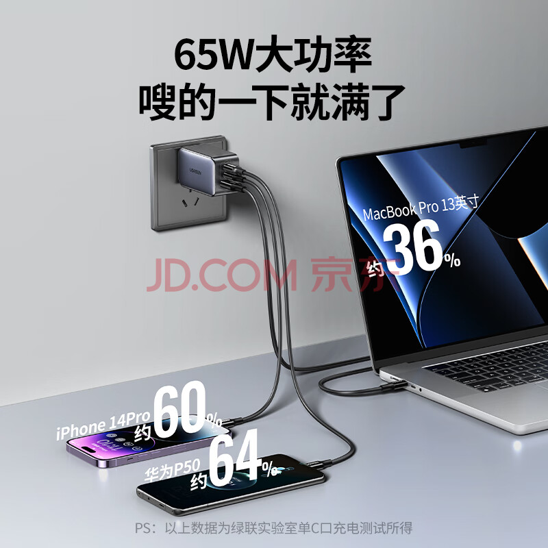 商品相册:绿联65W氮化镓充电器Type-C多口快充头pd40/45W适用苹果17三星华为手机MacBook笔记本电脑数据线插头第