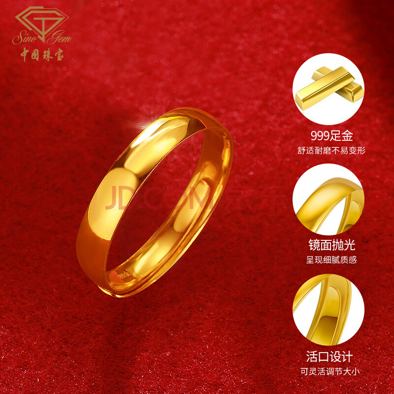 商品相册:中国珠宝生日礼物送女友 黄金戒指女足金999光面素圈活口戒指求婚生日第