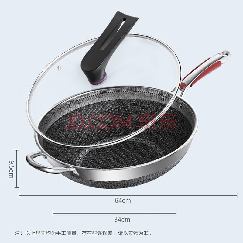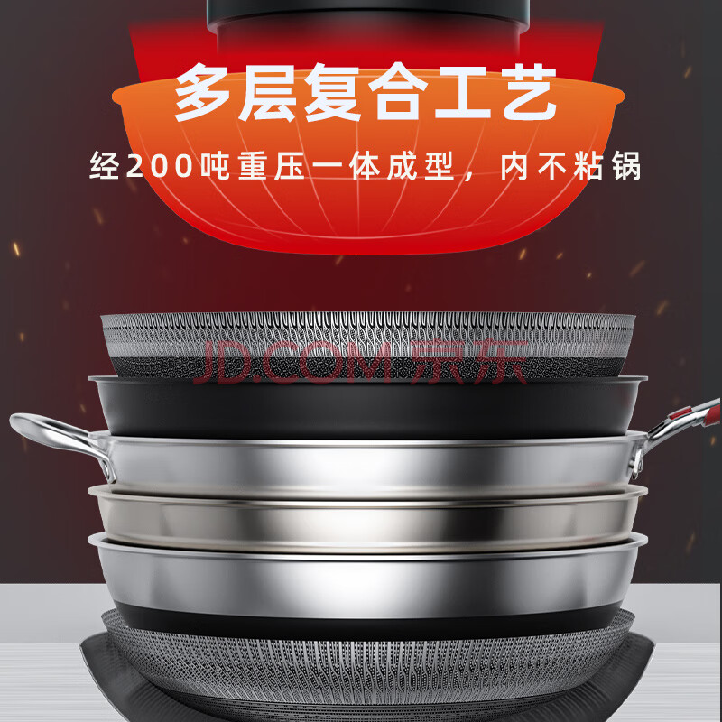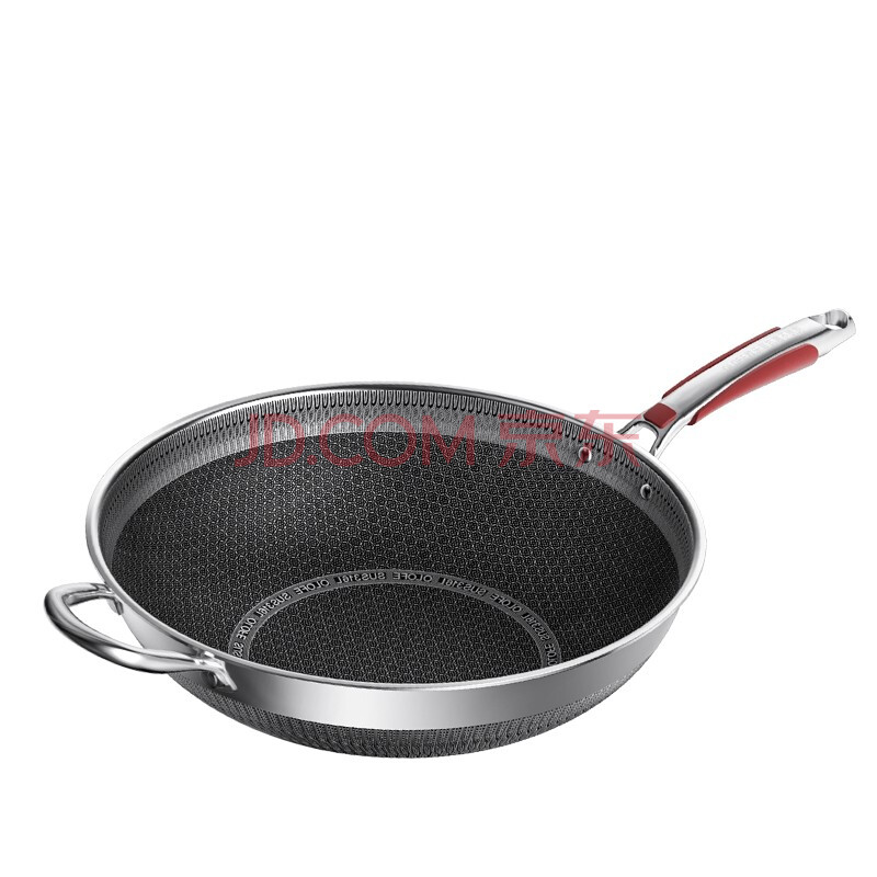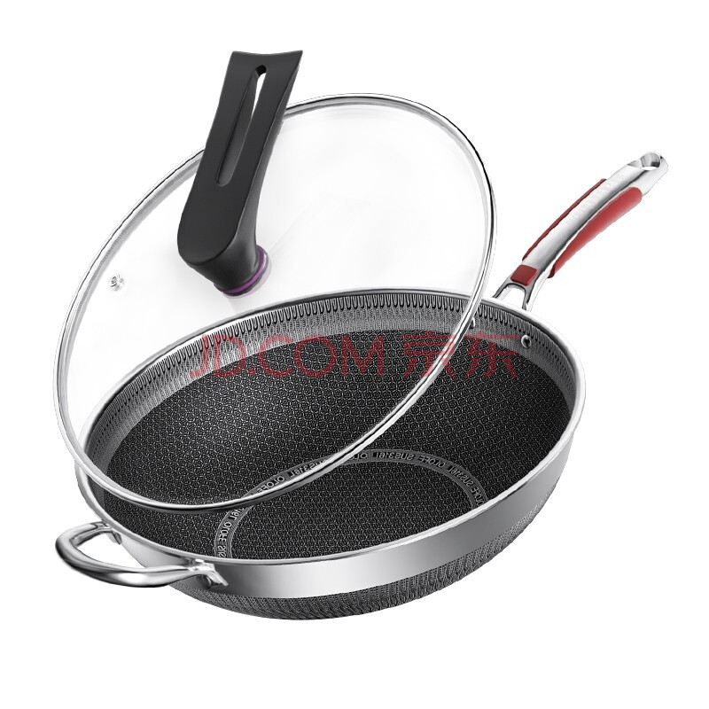商品相册:欧乐菲(OLOFE)316L不锈钢炒锅蜂窝平底炒炖菜锅不粘爆炒烹饪锅具燃气灶通用34cm第