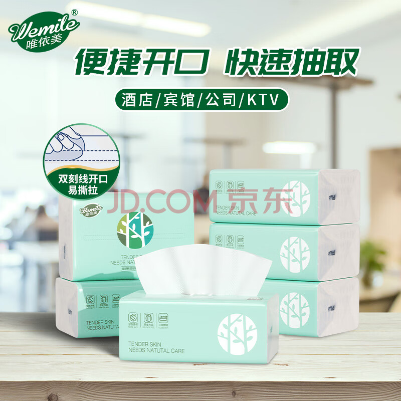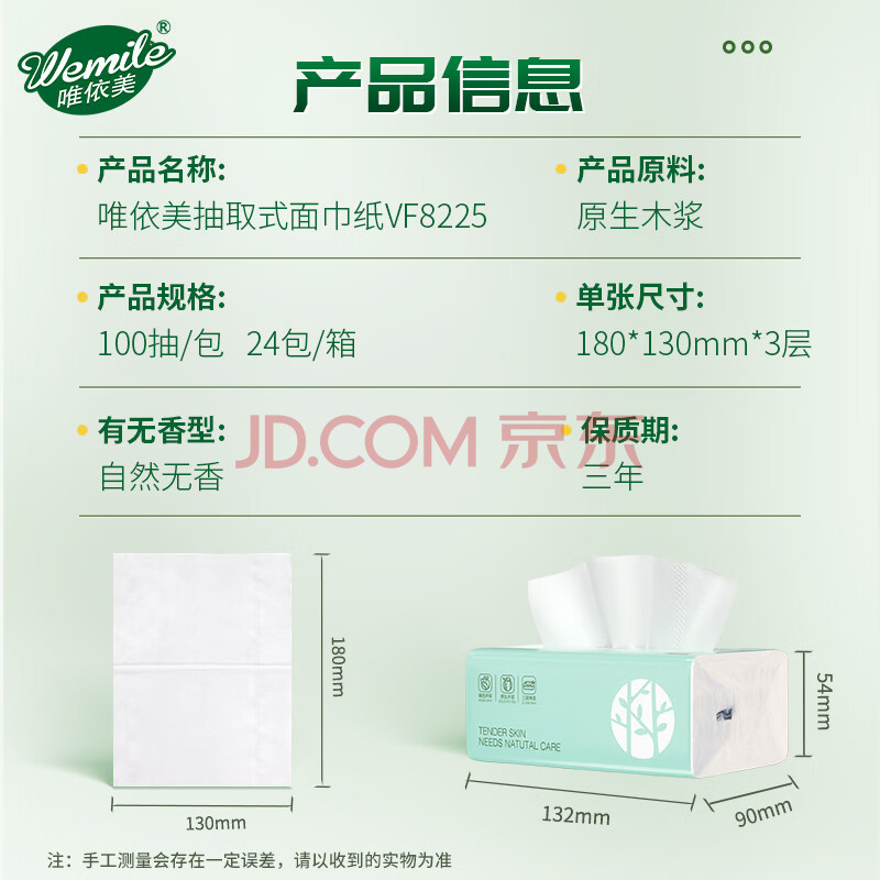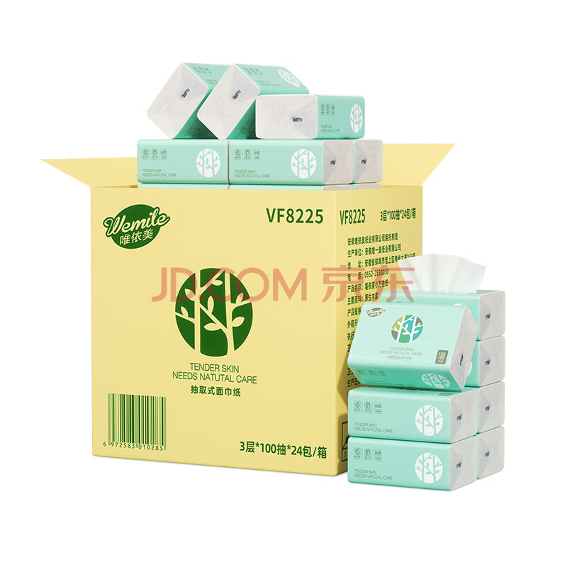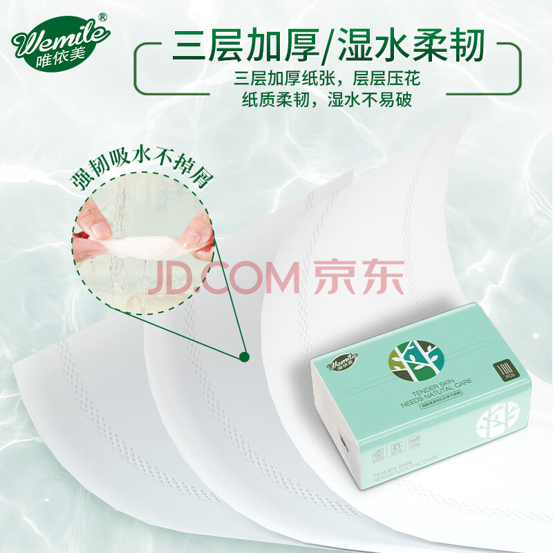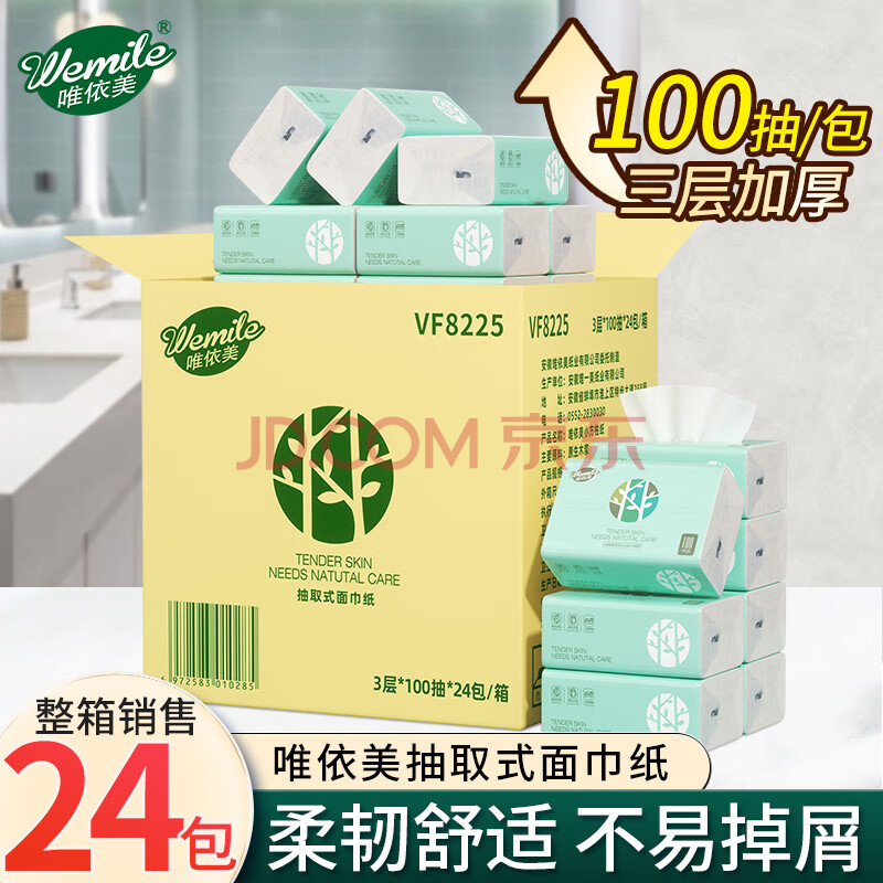商品相册:唯依美抽纸3层100抽*24包加厚面巾纸餐巾纸家用纸巾卫生纸擦手纸 整箱第