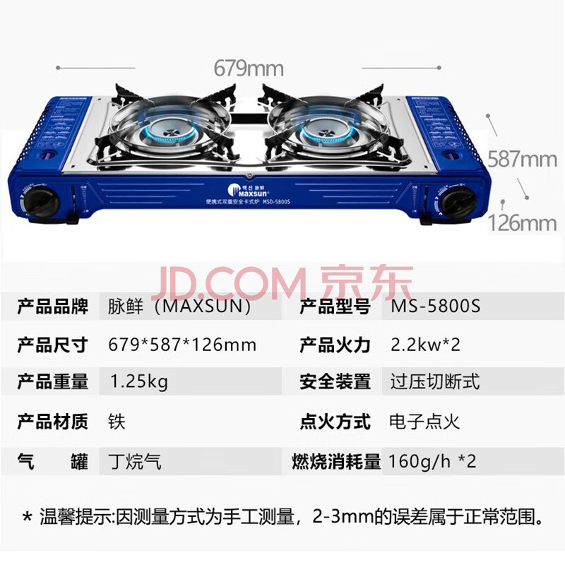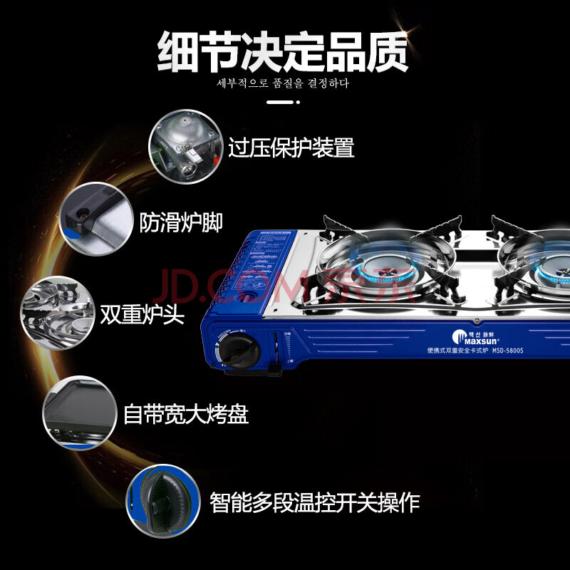 商品相册:脉鲜MAXSUN双灶卡式炉MS-5800S瓦斯燃气炉煤气炉卡式气户外煎烤盘第