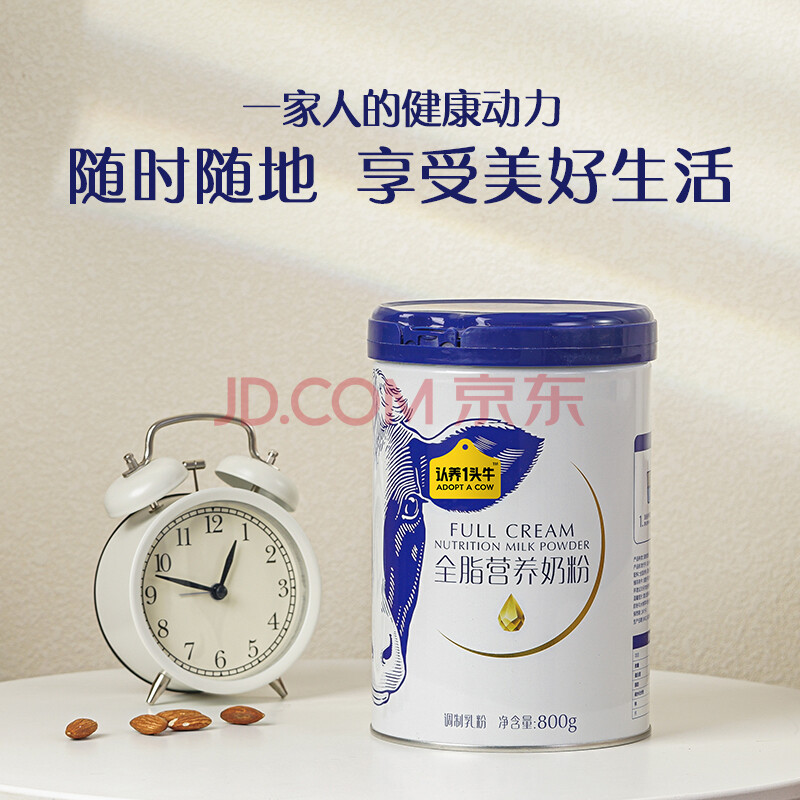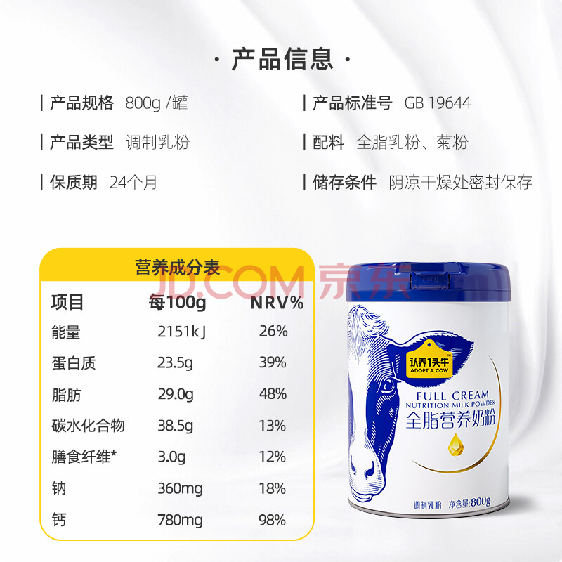 商品相册:认养一头牛全脂奶粉高钙 800g/罐 成人奶粉学生奶粉中老年 全家营养送礼第
